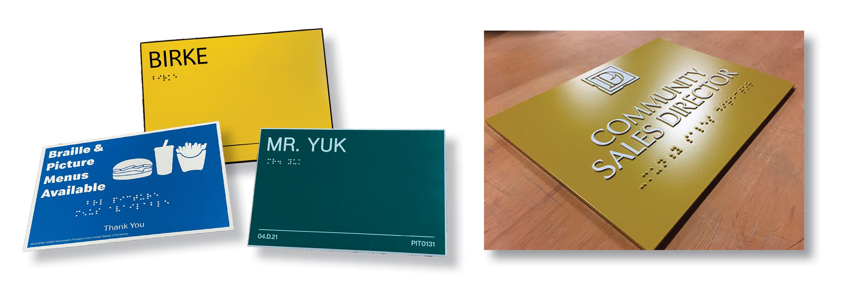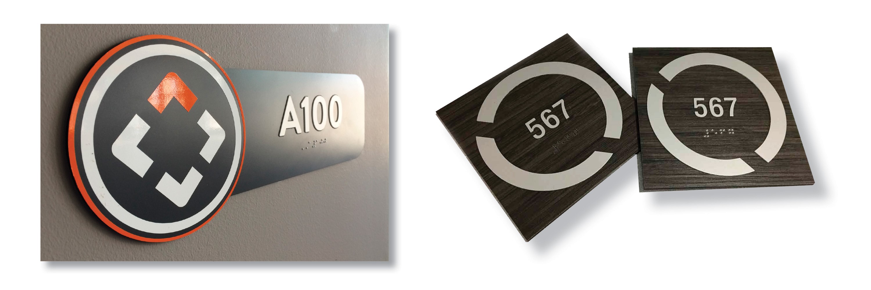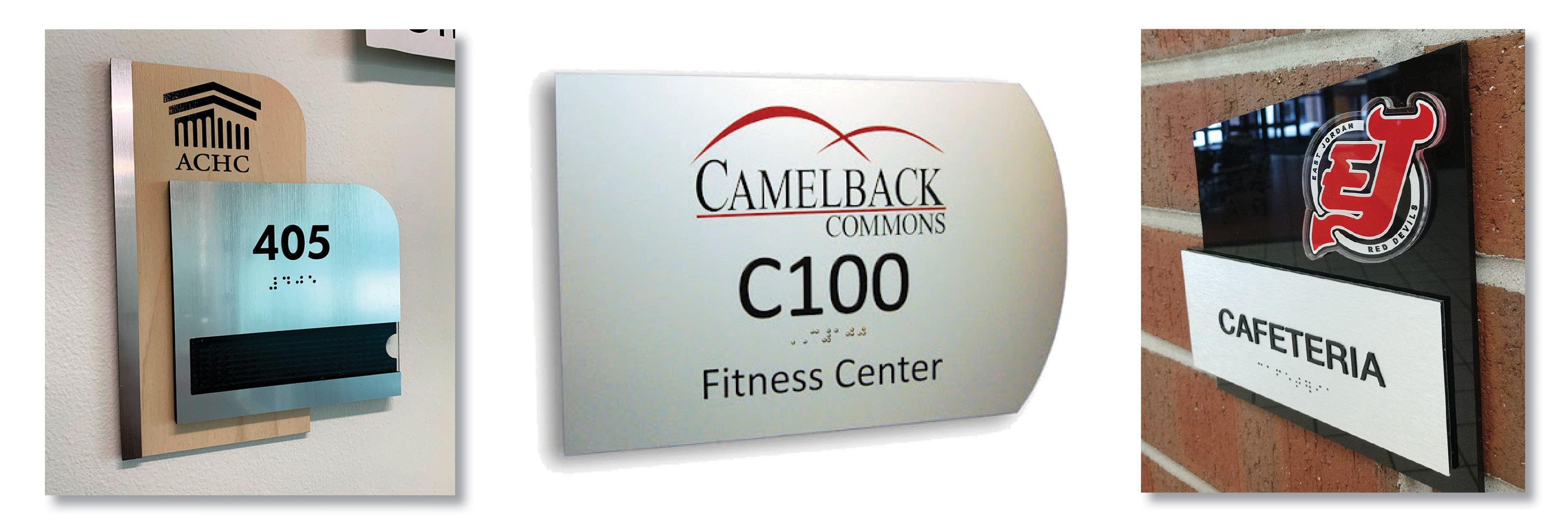 Background and Textile color options allow you to have your signage match your interior color scheme. Custom Shapes, Colors, Verbiage, Symbols and Sizing available made to order. Contact 800.922.9250 or email sales@bowmandisplays.com