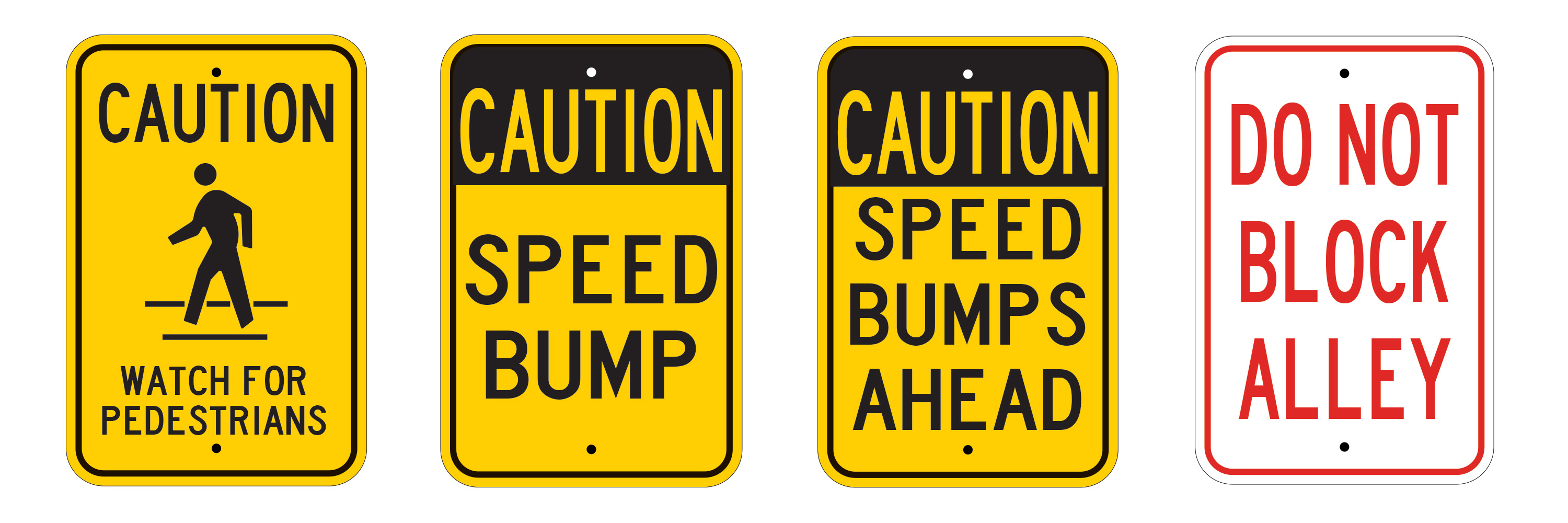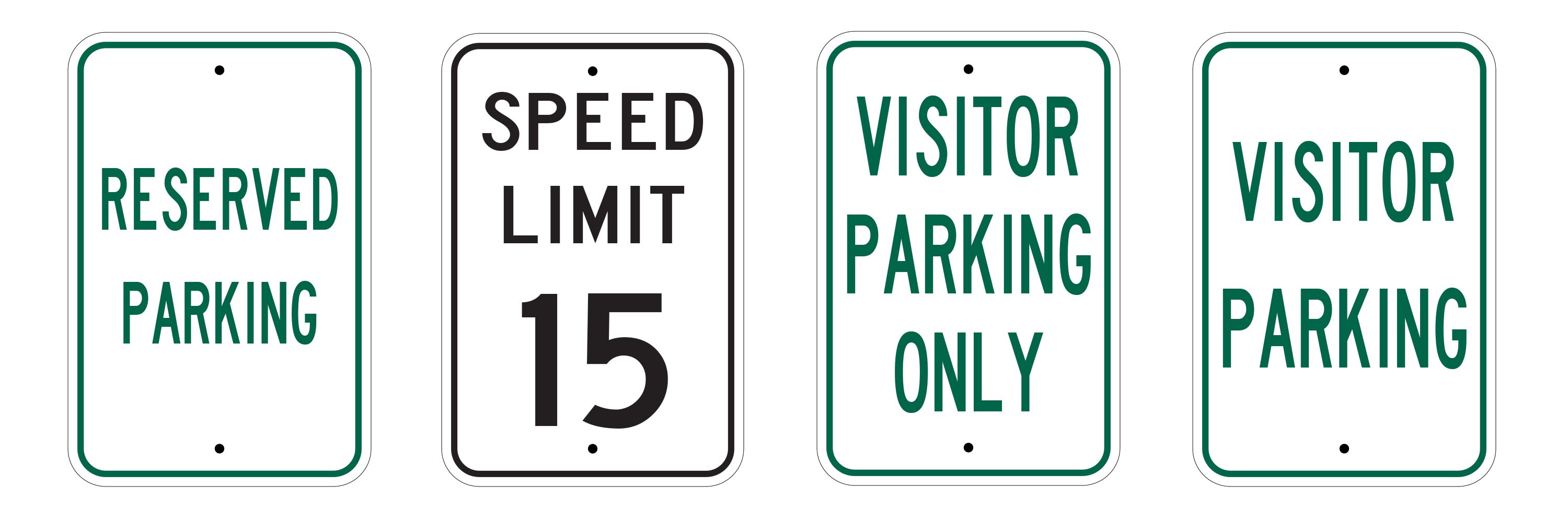 12"w X 18"h with standard pattern pre-drilled post mounting holes. Select from options to the right, or contact us for signs not shown, or a custom design. Choose material thickness from option to the right.